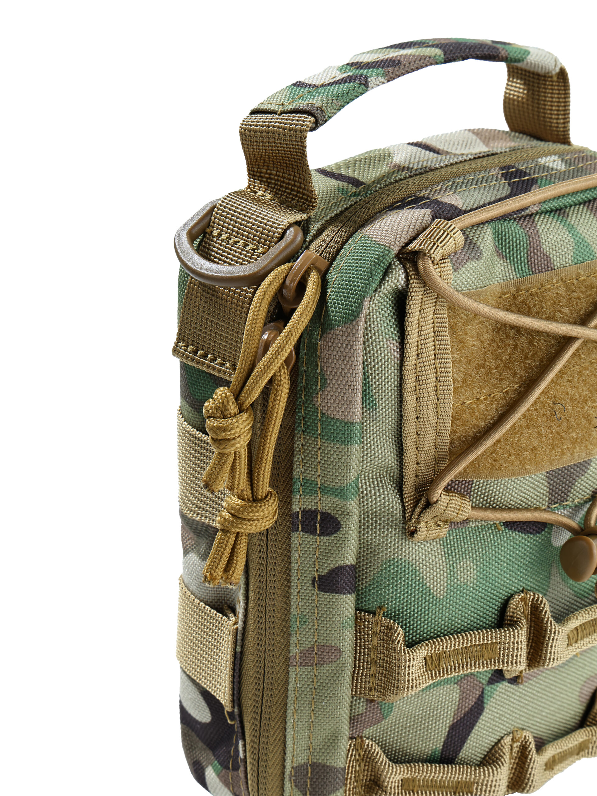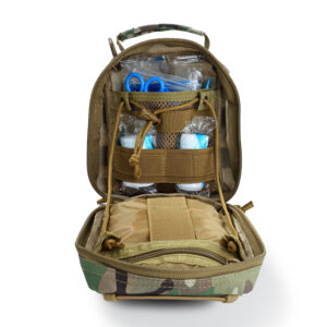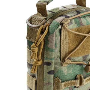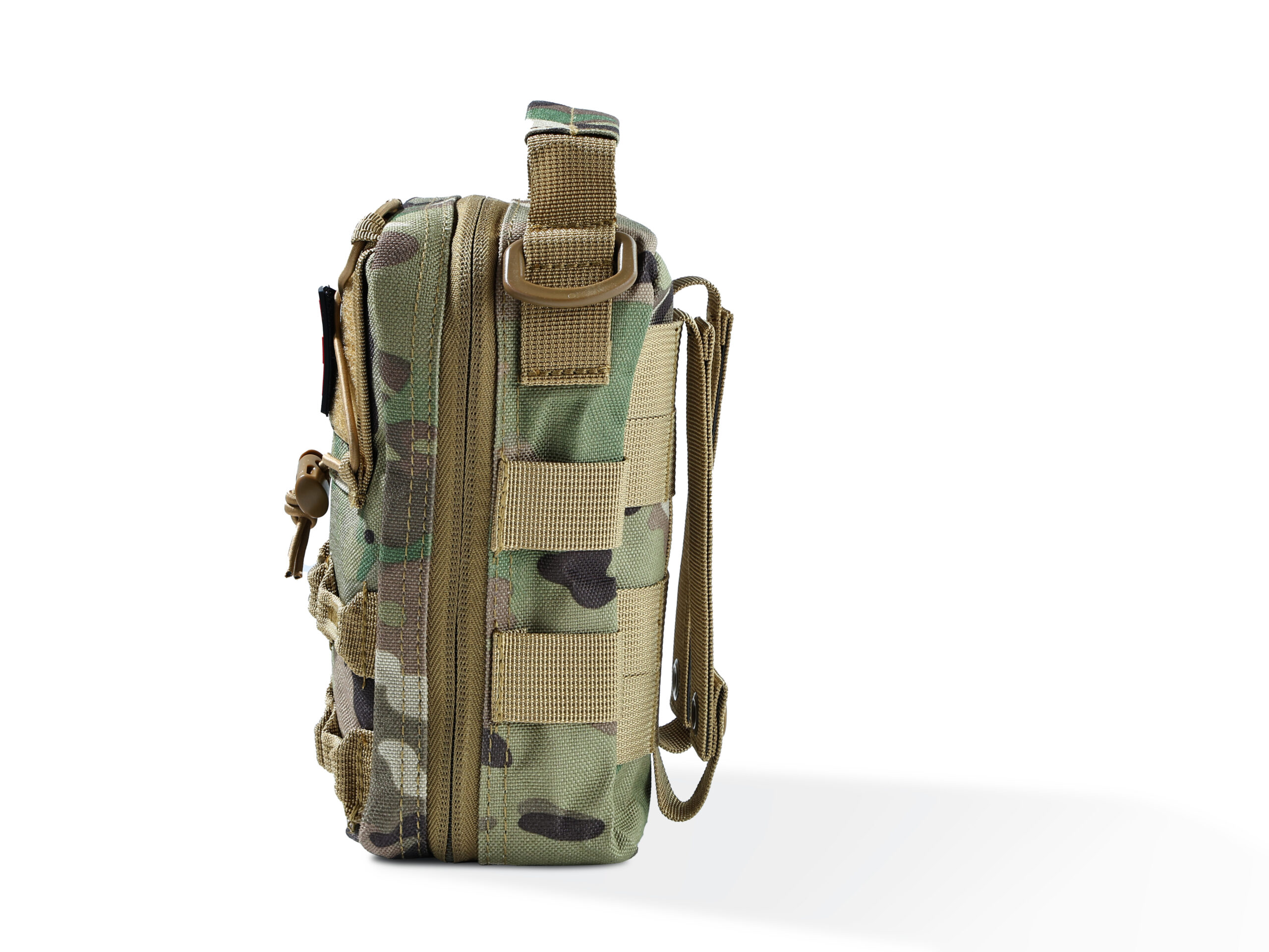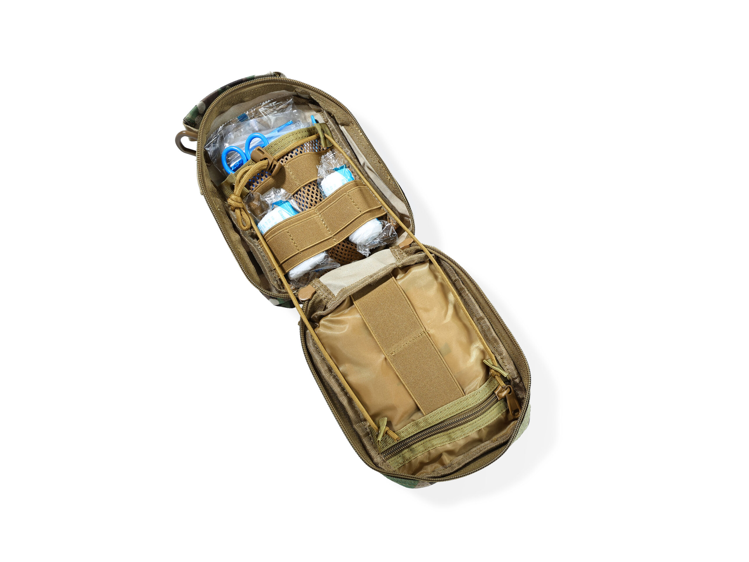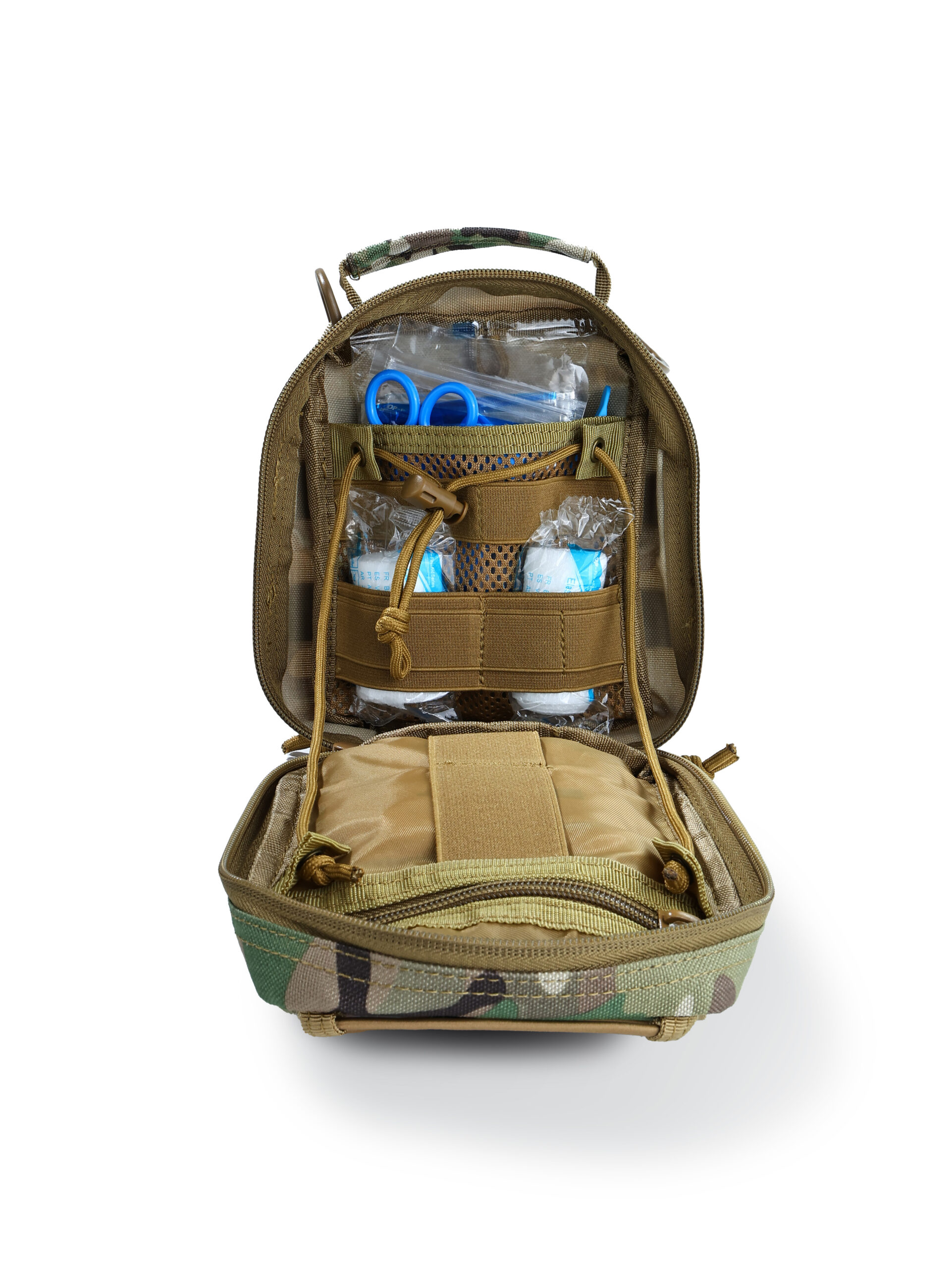 Cette trousse de première qualité contient des fournitures médicales essentielles, soigneusement organisées dans un sac militaire robuste de 20,5 x 20 x 11,3 cm :